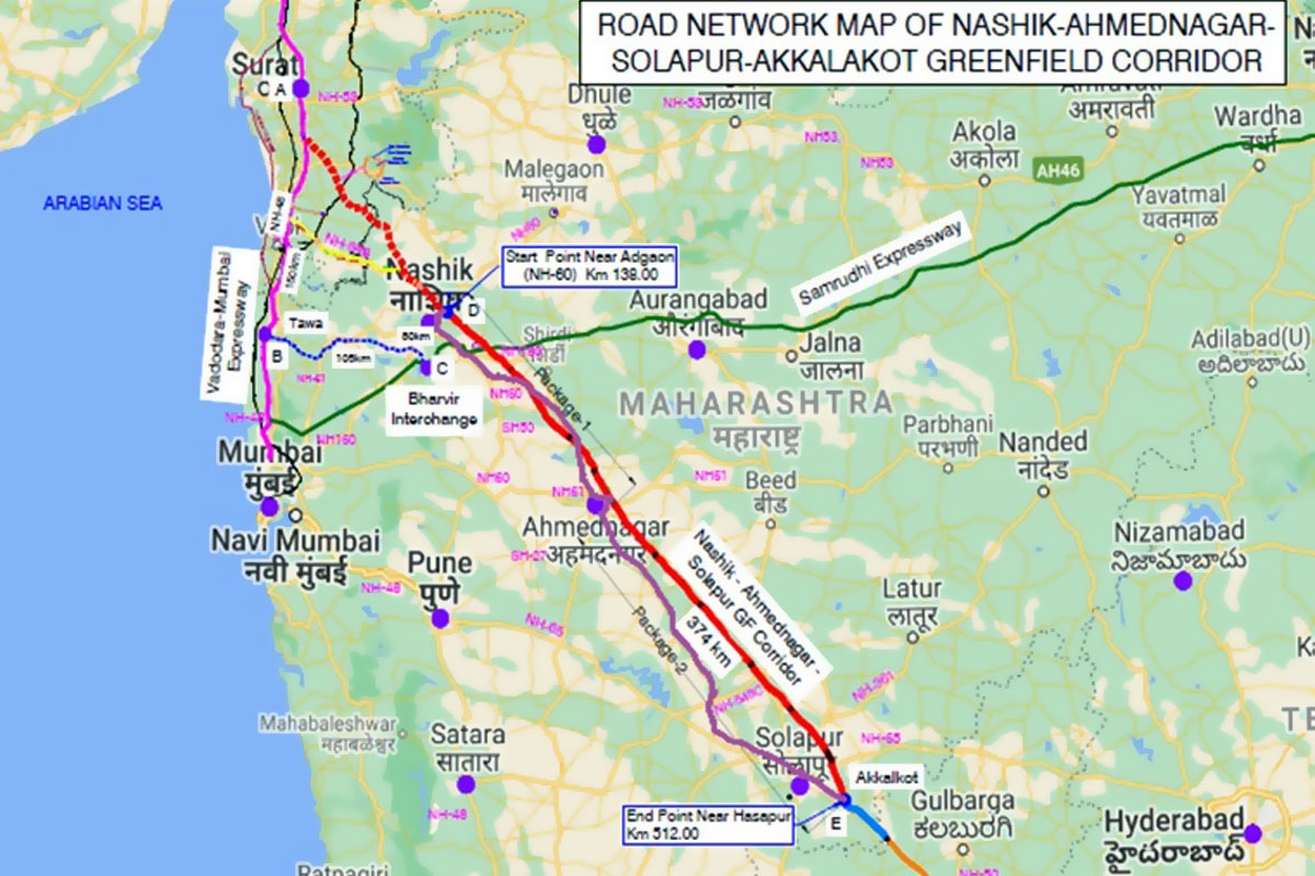 Cabinet approves Construction of 6-lane greenfield access-controlled Nashik-Solapur-Akkalkot Corridor in Maharashtra on BOT (Toll) Mode